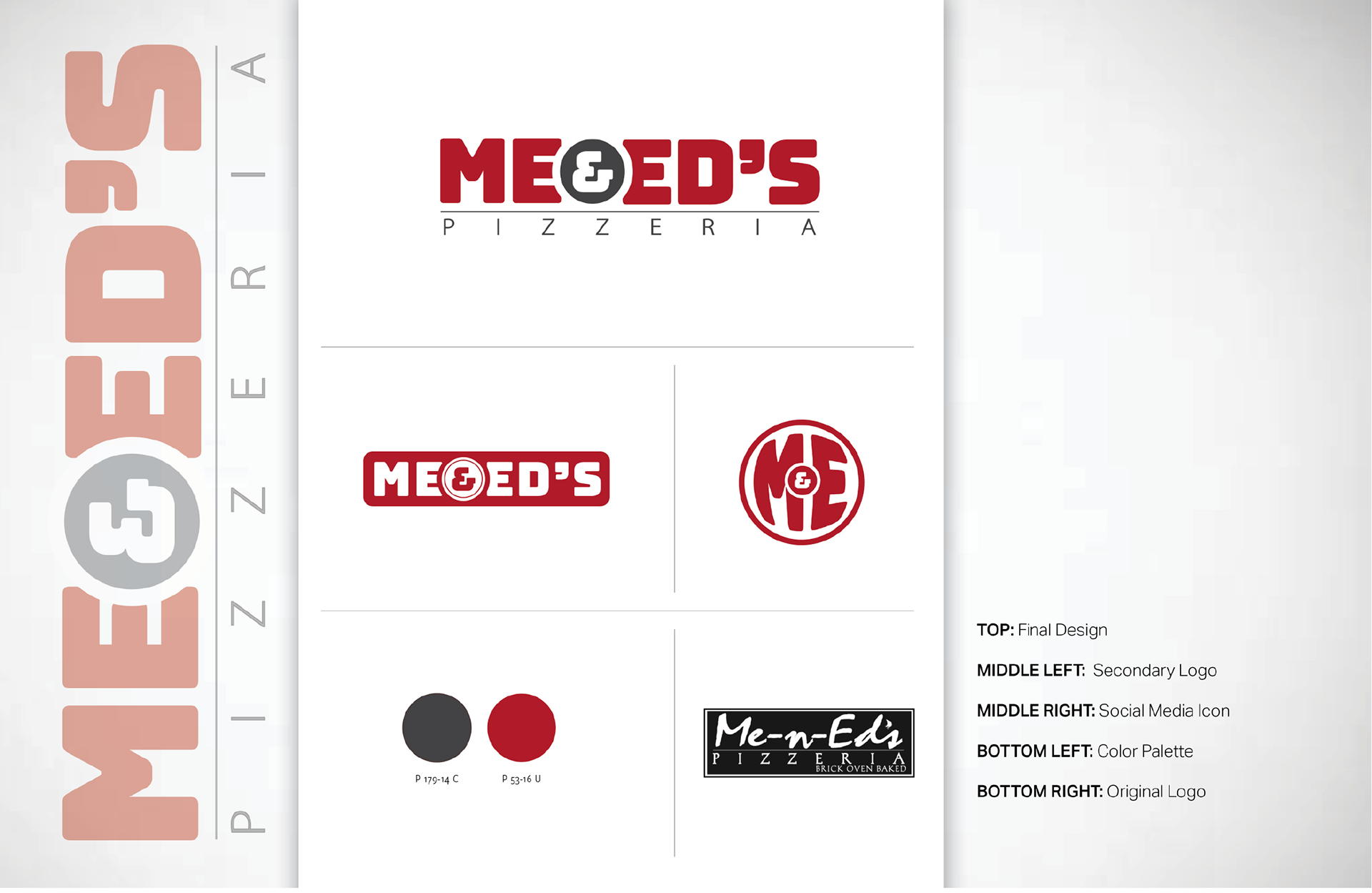 Brand redesign of a popular Central California pizzeria called "Me-n-Ed's." While I love the timeless feel of their current brand, I took on the challenge of creating a modern, youthful look to appeal to more18-25 year olds.