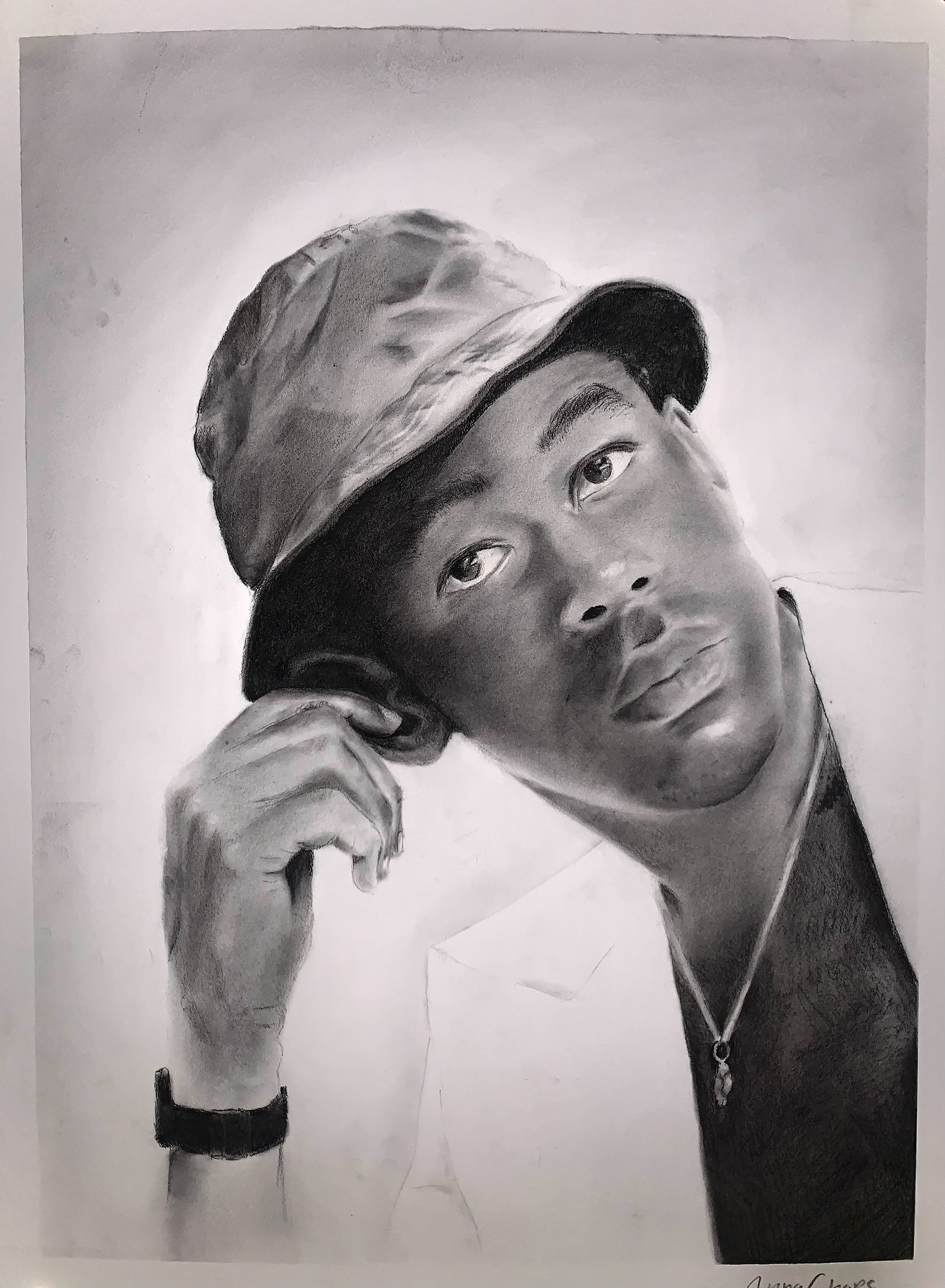 Collection of traditional art created using a multitude of mediums: charcoal, colored pencil, and acrylic paint.