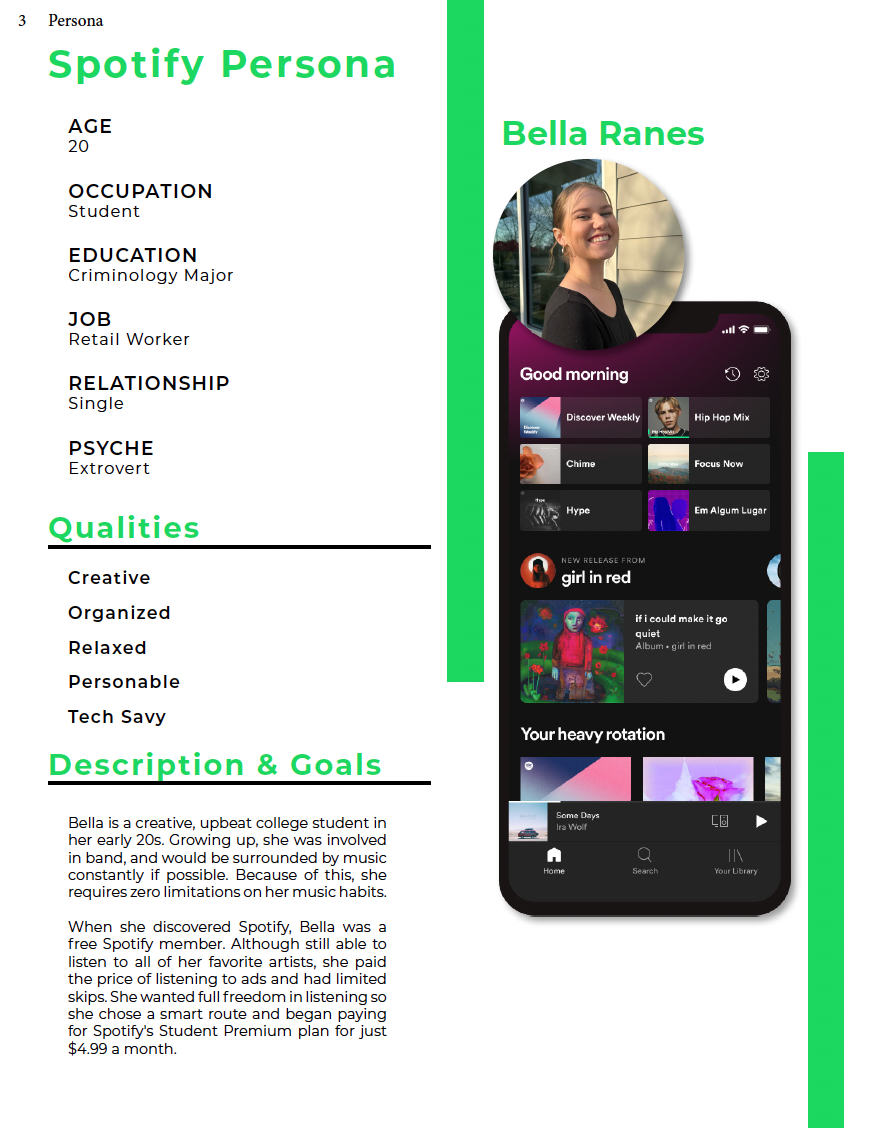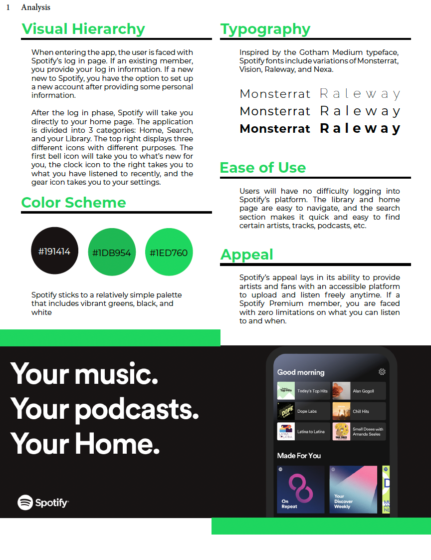 My analysis of Spotify includes an in-depth evaluation of its brand identity, user persona, and interface structure.
